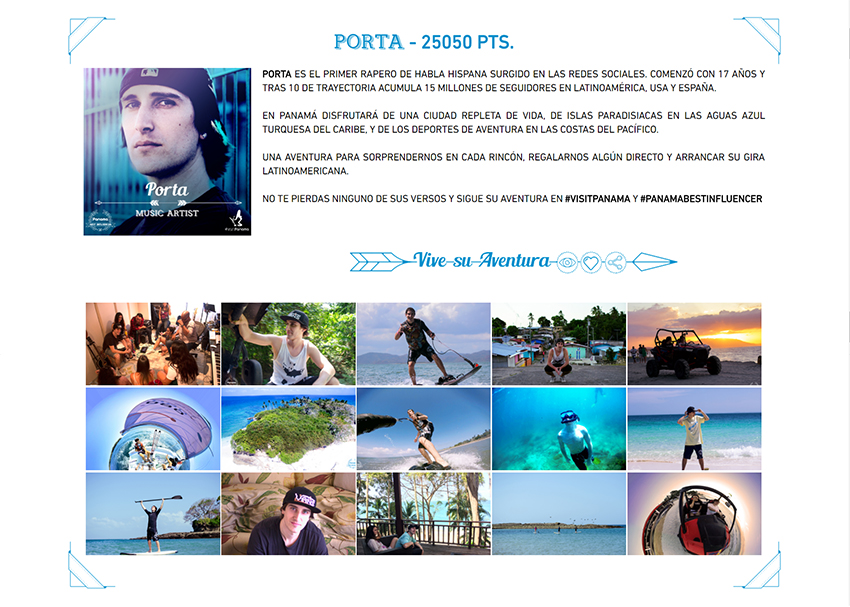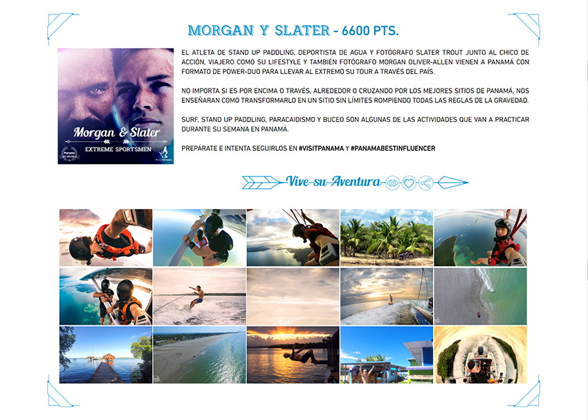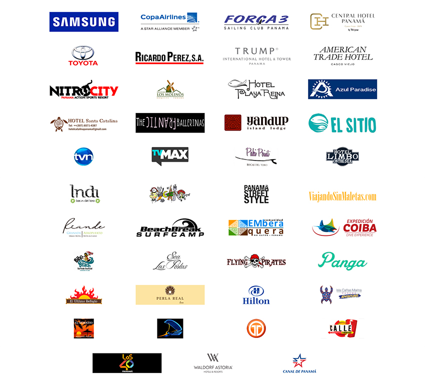 Samsung Latinoamérica, Copa Airlines, Ricardo Pérez, S.A. – Toyota, Waldorf Astoria Panama, Yandup Island Lodge, Canal de Panamá, El Sitio de playa venao, Isla Cañas Marina, Beach Break Surf Camp Playa Venao, Panga, American Trade Hotel, Sailing Club Panama, El Remanso B&B and Vacation Rentals, Sea las Perlas, Central Hotel Panamá, Nitro City Panama, Riande Granada Urban Hotel, Azul Paradise, Trump Panama Hotel, Hilton Panama, Tantalo Hotel Kitchen Rooftop, Bocart Restaurant, Casa Nolita, Los Cuarenta Principales, Calle 7 Panamá, Telemetro, TVMAX Panamá, TVN Panama